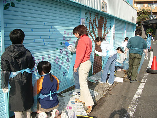 | 前回(2006年12月)、八雲小6年生たちがシャッターに絵を描きました | ||