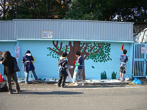 | ◆ 氷川神社シャッターの塗替えの取り組み状況 ・地域のみなさんもご存じかと思います。10月初旬から始まった、八雲小6年生による氷川神社東側の車庫シャッターの塗替えがようやく完了しました。八雲小ではこの絵画を12月19日(金)、20(土)の展覧会「八雲美術館 〜色と形に思いをのせて〜 」の中で、6年共同作品「みんなの春夏秋冬」として出展しました。6年生のみなさん、図工専科の先生ありがとうございました。 ・この間ご協力いただいた氷川神社、河行工務店さま、また塗替期間ご不自由をお掛けした車庫利用者のみなさん、そして毎回見守っていただいたPTAのみなさんに感謝いたします。 ・シャッター塗替えは、引き続き来年4月以降に北側に移ります。まちの雰囲気が変わり、通りがかりのみなさんが「ホッ!」としていただける時間と空間ができあがればと思います。八雲小と来年の6年生の奮闘にご期待下さい。 |