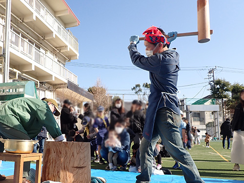 | 去る1月15日(日)、八雲小学校の校庭をお借りし「新年お楽しみ会」を開催いたしました。 コロナ禍のため昨年、一昨年は中止し、2年ぶりに開催することができました。コロナ対策のため今年は参加者の方に事前の申込みをしていただきまして、ご協力ありがとうございました。 また、例年は雑煮を振舞っていたのですがこれは自粛し、搗いたおもちはおもち帰りいただきました。小学生が142名、幼児と大人が178名、合計320名の方にご来場いただきました。ウクライナからいらっしゃって目黒区内にお住いの方にもご参加いただけました。 |