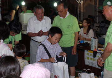 ![]() 盆踊り抽選に当選して賞品(お米1Kg)をもらう |