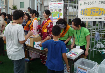 ![]() ゴミ削減のため、模擬店毎に容器を回収 |