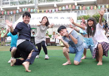 「第17回八雲の夏祭り」は地域の商店会の協賛や町会・学校など多くの団体・方々の協力を得て、平成24年7月14日(土)と15日(日)、八雲小学校の校庭でを開催されました。 天候にも恵まれて子供から高齢者まで 大勢の方に参加していただきオープニングイベントや模擬店、盆踊りなどを楽しみました。 特に今回は東日本大震災復校支援と節電に取組み、参加の皆様に協力いただいて多くの義援金も集まりました。 |