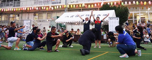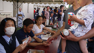 7月16、17日第21回八雲の夏まつりが開催されました。梅雨はまだ明けず、7月当初から猛暑が続いていました。昨年20周年を迎え、今回は新たな気持ちで準備を進め、当日は猛暑もひと段落し多くの方々の来場がありました。 それぞれの模擬店は販売に工夫を凝らし長い行列もできました。児童館太鼓クラブ、八雲小金管バンドの素晴らしい演奏はお祭りの雰囲気に花を添えてもらい、よさこいソーランやサプライズイベントでの盛り上がりは会場を巻き込んで一体感がありました。 また安全安心と楽しさを基本に考える上で、会場内の見廻りを消防団に担当してもらい多くのアドバイスをもらいました。 |