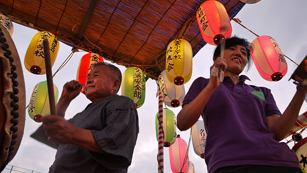 ![]() 当日は朝早くから櫓や提灯をセットアップ |