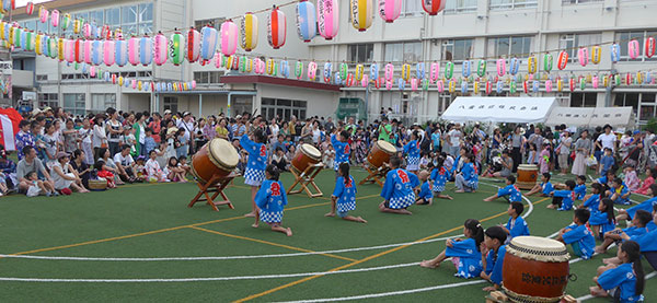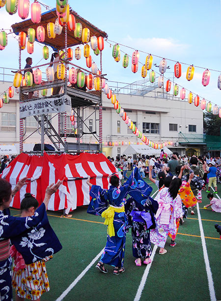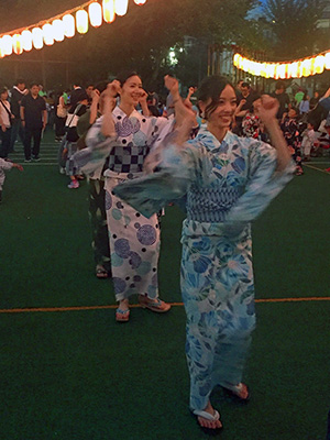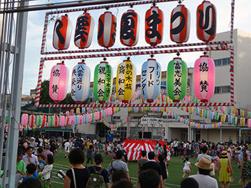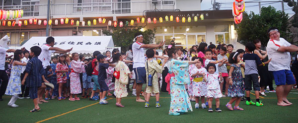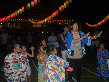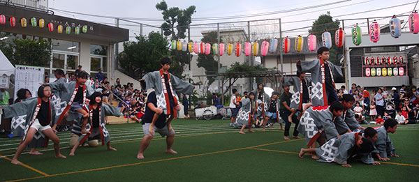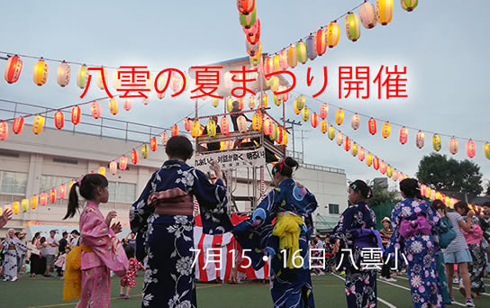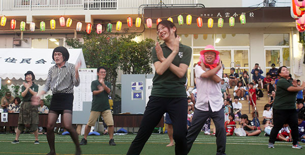 第22回八雲の夏まつりが7月15日、16日の2日間今年もにぎやかに開催されました。夏らしい天候に恵まれかき氷や冷たい飲み物が飛ぶように売れていました。 オープニングイベントは児童館こども太鼓クラブや八雲小金管バンドの演奏、八雲小の有志によるよさこいソーラン。サプライズは人気沸騰中お笑い芸人仮装のショートコントで盛り上がり、恋ダンスをみんなで踊りました。 2日間で約80名の無料浴衣着付け利用があり、東京バレエ団からはプリンシバルのお2人が盆踊りの輪に華を添えてくださいました。 盆踊りに参加してくれた子供達には協賛5商店会からキャンディレイのプレゼントがありみな笑顔でいっぱいでした。本年は九州北部豪雨義援金に模擬店売上の一部を寄付をいたしました。参加、ご協力いただいたみなさまほんとうにありがとうございました。 |