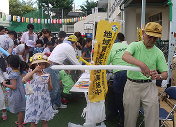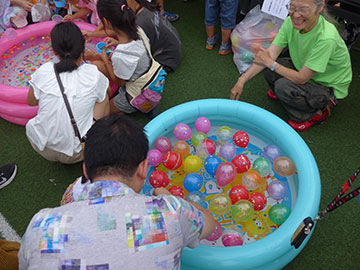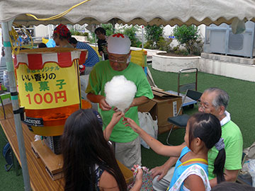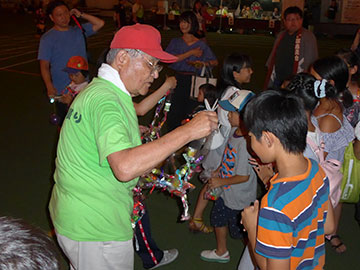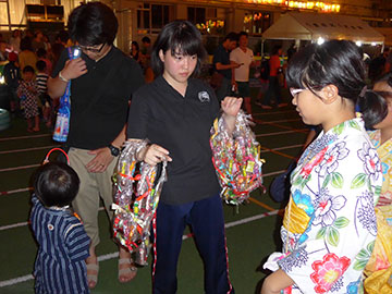 ![]() 踊っている子ども達に「飴のレイ」をプレゼント |