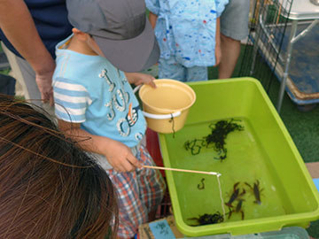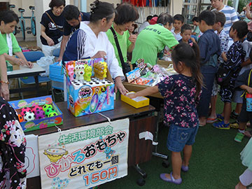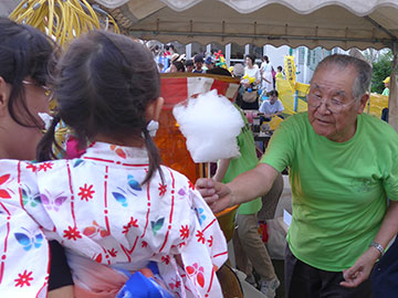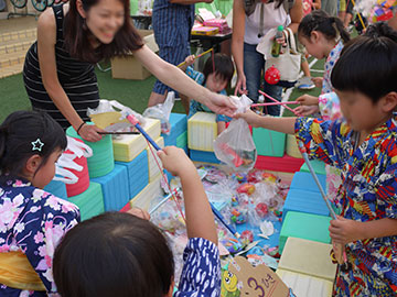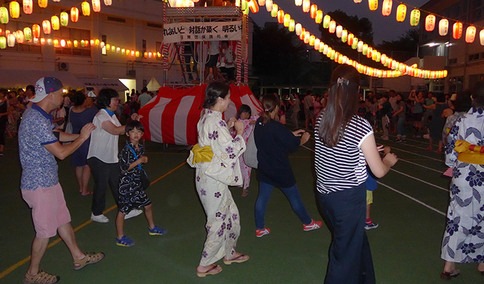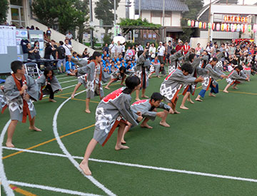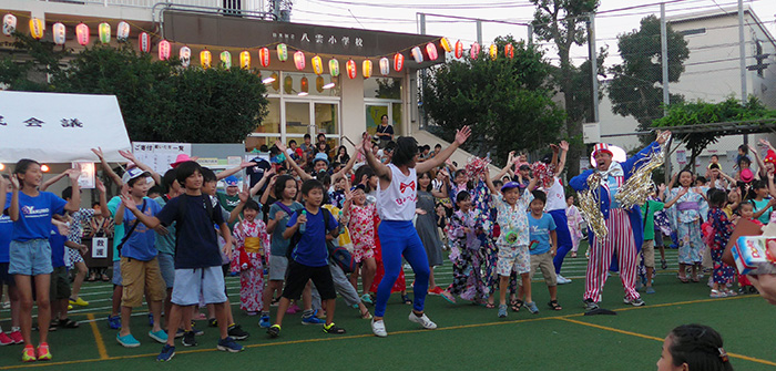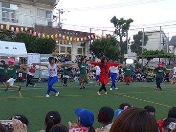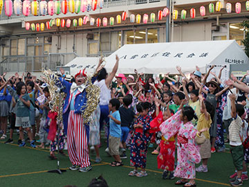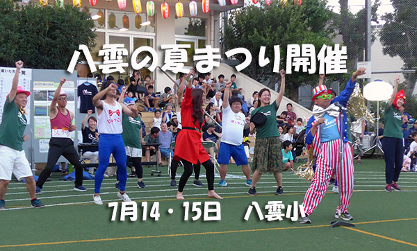 第23回八雲の夏まつりが7月14日、15日の2日間今年もにぎやかに開催されました。猛暑の中、かき氷や冷たい飲み物が飛ぶように売れていました。 オープニングイベントは児童館太鼓クラブや八雲小金管バンドの演奏、八雲小の有志によるよさこいソーラン。サプライズは校長先生が率先しての「ヤングマン」のダンスと熱唱に大盛り上がり、最後は子ども達も参加してみんなで踊りました。 今年は準備から本番・片付けなどにPTAや地域の団体、さらに中学生・高校生もお手伝いに参加してくれました。 盆踊りで盛り上がったところで、地域の商店会からの協賛で準備したアメのレイが、踊っている子ども達にプレゼントされ大好評でした。 |