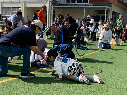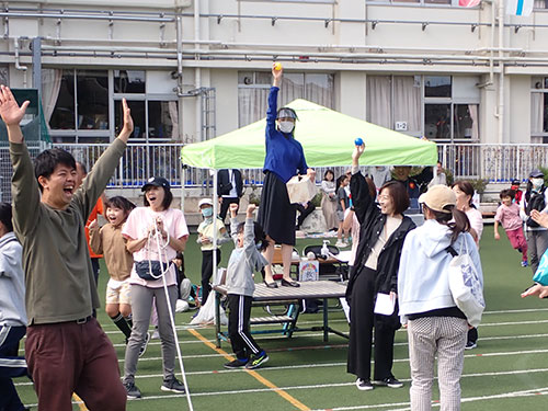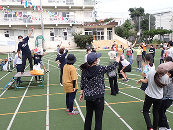 朝早い時間は雨がパラパラ降っていて校庭の開催を心配しましたが、参加者が集まる頃にはすっかり雨もやみ、秋晴れの中で『第35回みんなの運動会』を行いました。 今年度は数年ぶりにコロナ禍前と同じ通常開催を行うことができ、小さいお子さんから高齢者までの方が色々な競技に参加していただきました。 |