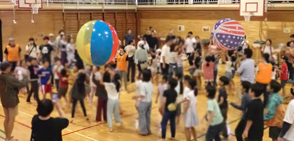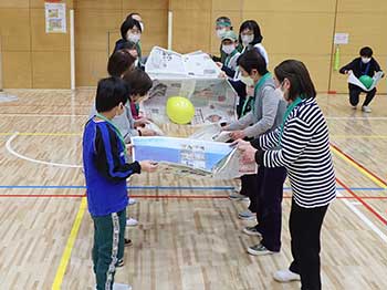 ![]() 大玉をお隣さんへ力を合わせてスピードアップで送りましょう (全員参加) |