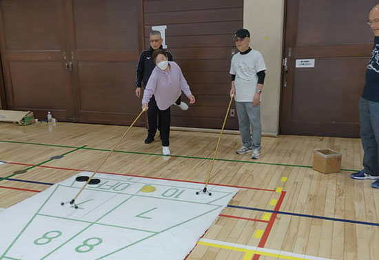 3月9日(日)に碑文谷体育館にて、スポーツ推進委員協議会主催の“スポーツフェスタ2025”が行われました。住区からは2チーム参加。 住区対抗ボッチャ大会がメインでしたが、体験会として卓球バレー・室内モルック・シャッフルボードの3種目も体験しました。 |