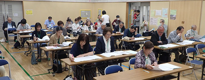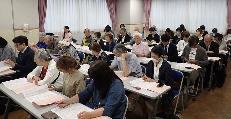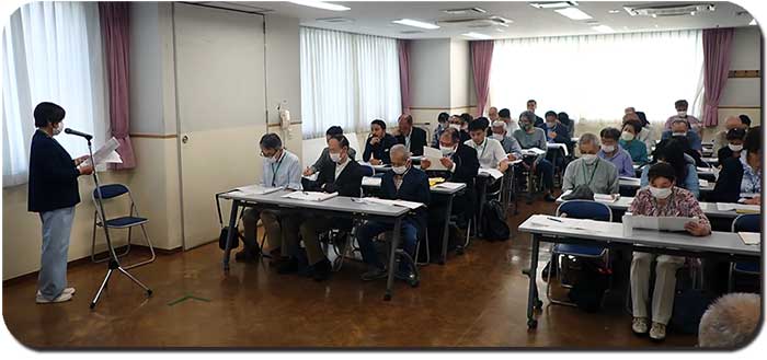 ![]() コロナ前の人数にもどった参加者、左端は司会をする金澤事務局長 |