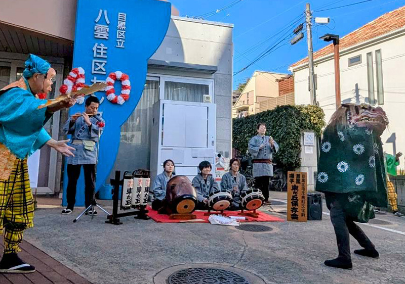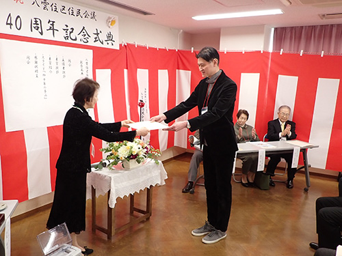 八雲住区住民会議の設立40周年記念式典に多くの方々がご出席くださり、感謝申し上げます。目黒ばやし保存会による伝統芸能で式典を盛り上げていただきました。 準備は一昨年から実行委員会を設立し、地域の協力で氷川神社のシャッター絵を6年生が描き、来年度も継続予定です。多くの方々からご寄付をいただき、感謝しています。 |