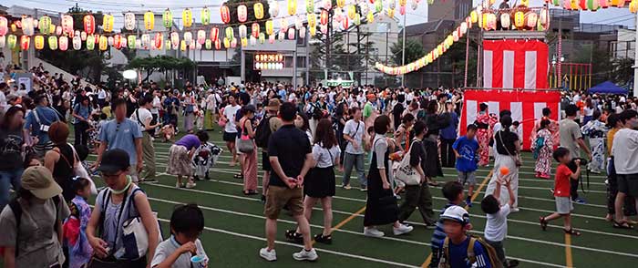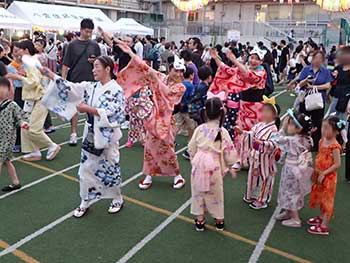 ![]() 大人も子どもも一緒に盆踊り |