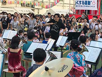 ![]() アンコールの声も八雲小金管バンドの演奏 |