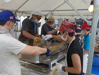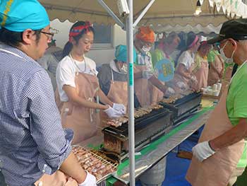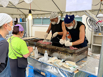 ![]() 暑い中、焼きそば調理に大汗 |