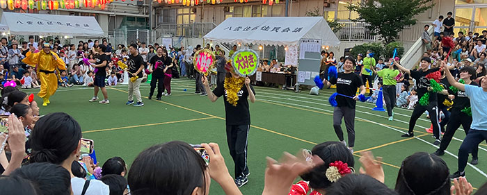 | 「祝 八雲小学校開校150周年 第26回 八雲の夏まつり」を7月15日、16日の2日間に渡り開催致しました。飲食ありの夏まつりは4年振りということもあり、大勢の方々にご来場いただき、大変盛り上がった2日間となりました。 オープニングは、やくも児童館太鼓クラブ、盆女、八雲小学校金管バンド、小学校教職員の皆様が盛り上げてくださりました。 盆踊りでは、小さいお子さんから大先輩の地域の方まで、一生懸命に踊る姿がとても印象的で、一つの大きな「八雲の輪」ができたと感じております。 各出店団体、ボランティアスタッフ、校長先生はじめ先生方、地域の方々、そしてご来場してくださった大勢の皆様で作り上げた「八雲の夏まつり」だったと思います。 この場を借りて御礼申し上げます。 |