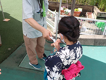 ![]() 子ども達にアメのレイをプレゼント |