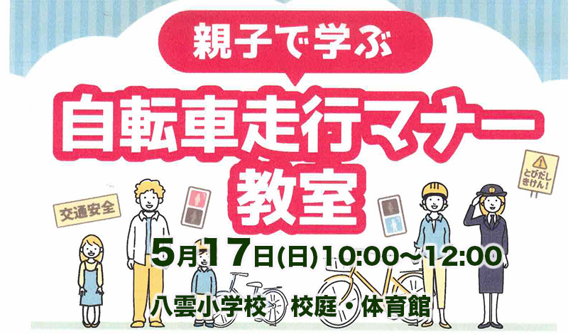 「親子で学ぶ 自転車走行マナー教室」5月17日(日)案内