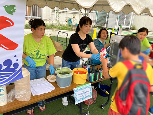 | 本年度はコロナ対策の為、初めての事前申込、定員入替制での夏まつり実施となりました。 申込は住区でも受付ましたがほぼ1日で定員に達する人気。 7月16日は雨で中止になりましたが翌17日は晴天に恵まれ、16日に申込された方々に向け急遽実施時間を早めての開催となりました。 飲食関係の出店がない中、めだかコーナーは高校生考案のゲームが好評で来場者に楽しんでいただけたようでした。お手伝いの高校生も「大変だったけど楽しかった、来年も予定が合えば参加したい」との感想。 |
